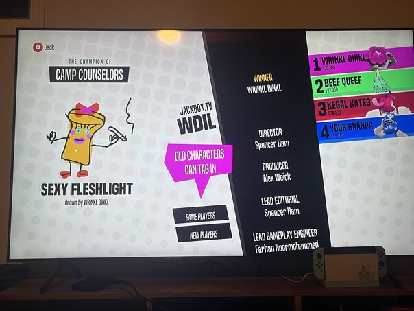 Claire's friends, Kitty and Wade, introduced Claire and I to a new Jackbox game they play called "Champ'd Up".