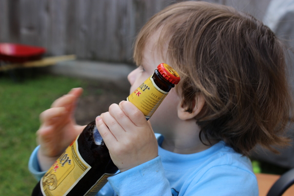I proceeded to take photos of him drinking Shiner.