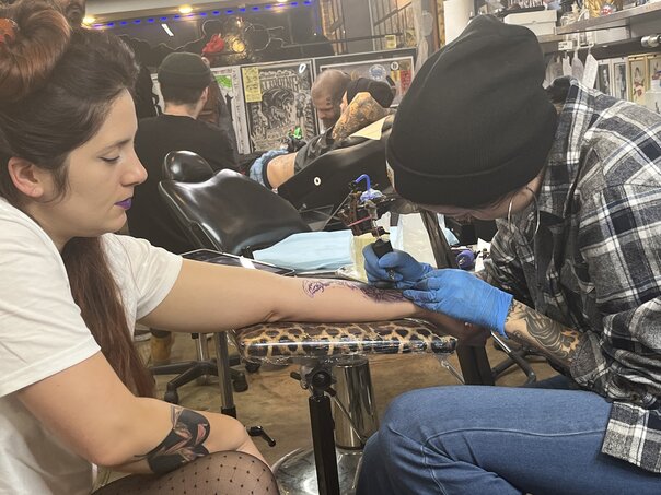 As a tribute and memorial to him, she found a tattoo artist who drew a beautiful portrait of him. It was subsequently tattooed on her left arm.