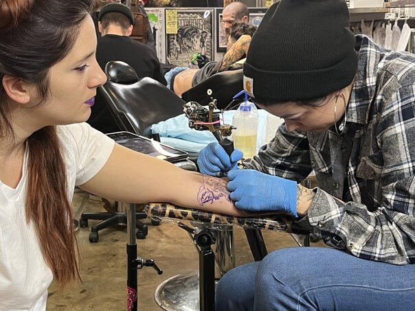 As a tribute and memorial to him, she found a tattoo artist who drew a beautiful portrait of him. It was subsequently tattooed on her left arm.