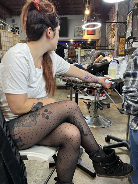 As a tribute and memorial to him, she found a tattoo artist who drew a beautiful portrait of him. It was subsequently tattooed on her left arm.