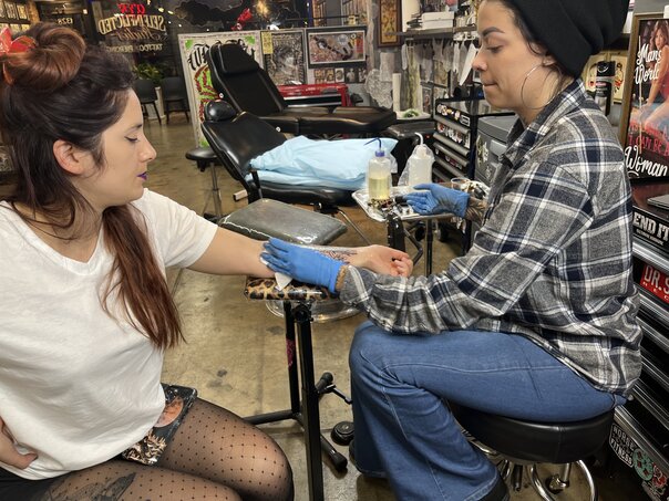 As a tribute and memorial to him, she found a tattoo artist who drew a beautiful portrait of him. It was subsequently tattooed on her left arm.