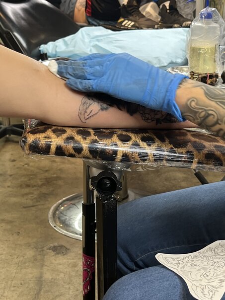 As a tribute and memorial to him, she found a tattoo artist who drew a beautiful portrait of him. It was subsequently tattooed on her left arm.