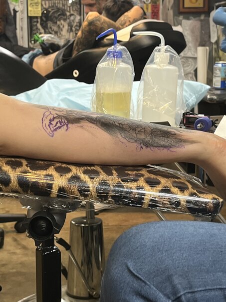As a tribute and memorial to him, she found a tattoo artist who drew a beautiful portrait of him. It was subsequently tattooed on her left arm.