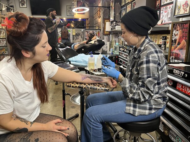 ![]() Jordan's Deuce Tattoo St. Louis, MO Jordan's beautiful German Shepherd, Deuce, passed away back in July. As a tribute and memorial to him, she found a tattoo artist who drew a beautiful portrait of him. It was subsequently tattooed on her left arm. The tattoo came out wonderfully. |