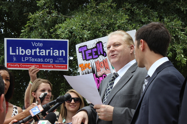 This is a photo taken during an outdoor libertarian political rally.