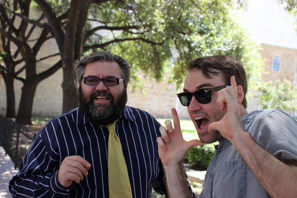 Two guys get a picture together making silly goofy faces