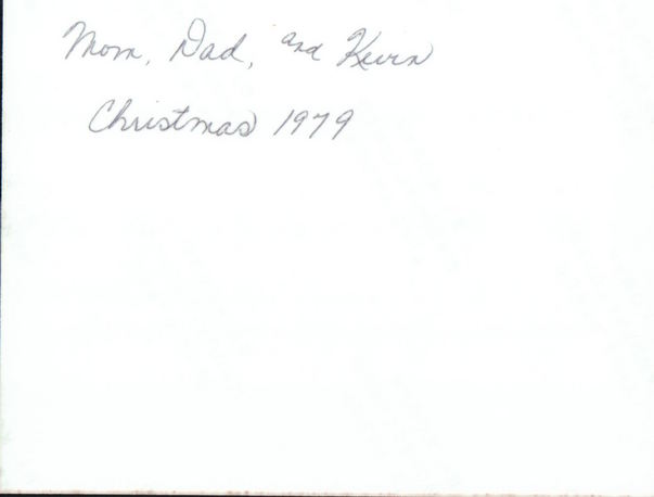 A white piece of paper with the words mom dad and kevin christmas 1979.