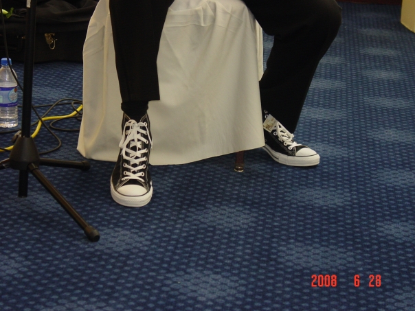 I had the privilege of performing before the wedding, while the bride walked down the aisle, and after the precession. The presenting of the bride song was called "I'll Catch You" by the Getup Kids.