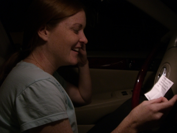 The long story is that he sent her on a lengthy scavenger hunt around Corpus Christi to which I was her bodyguard along the way. Her fondest memories are of me getting drunk in the car and speaking in the tongue of Borat for many hours.