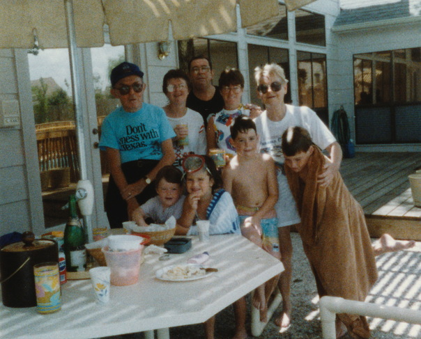 A family takes a photo together has they spend quality time outside