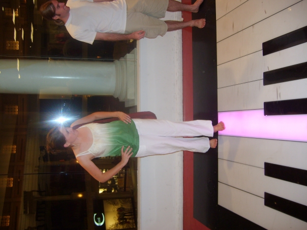 Playing piano on the floor