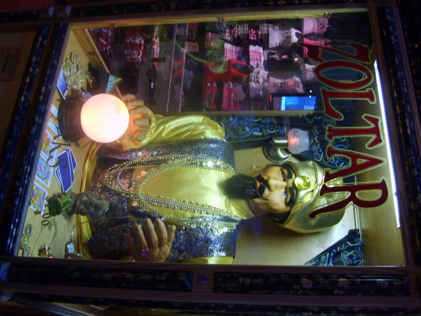 A mechanical "soothsayer" that you would see at a boardwalk; very colorful and shiny game.