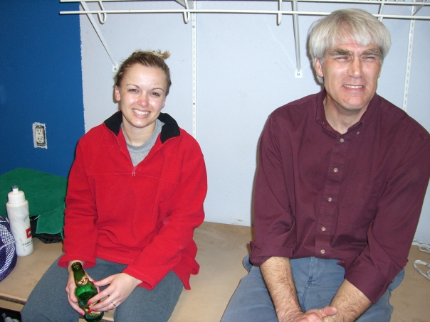Shortly after getting back from my business trip to London, I met up with Crockett at the old Austin Expo Center to see Krista play some hockey.
