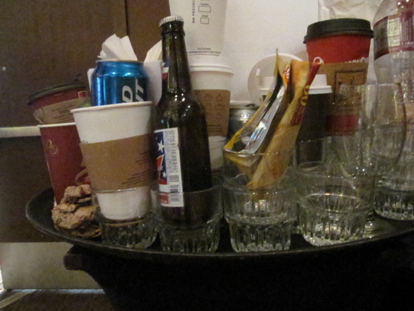 BOTTLES ANS GLASSES ARE THERE. WASTE COVERS ARE ALSO THERE. SOM MANY THINKS IN A PLATE