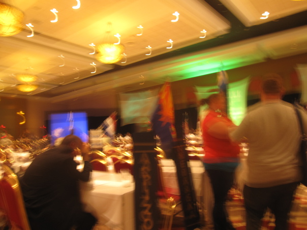 THE LIGHTS ARE DANCING ON THE CEILING AS THIS LARGE MEETING OF PEOPLE WIND DOWN FOR THE DAY.