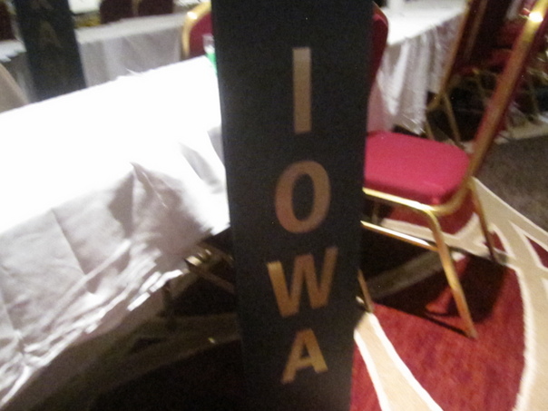 The state Of Iowa is displayed on a plaque in large shiny letters.