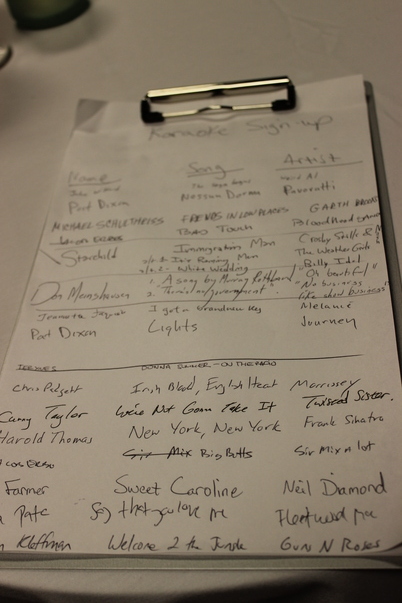 Pat Dixon and Rick Perkins worked to arrange a room, a bar, and a karaoke machine (the latter I think Ben Farmer rigged up with some sound equipment and a laptop).