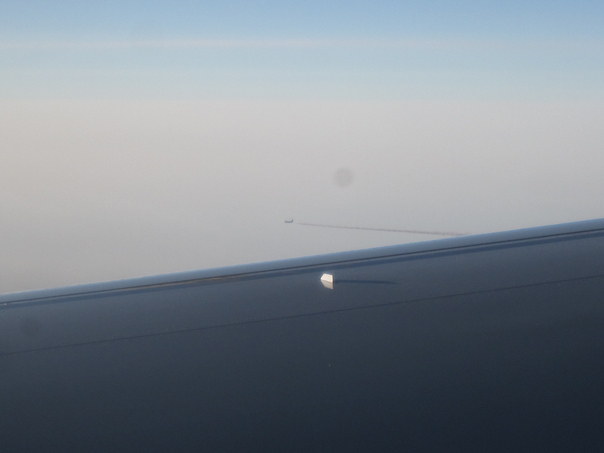 This looks like someone took another picture of an airplane while they where in an airplane.