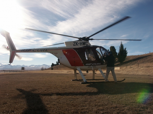 On a beautiful crisp morning we prepare to ride in this helicopter.