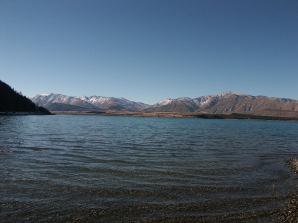 One of our many stops along the way, Lake Tekapo (pronounced Tee'-kuh-poo) was just another bit of lovely scenery.