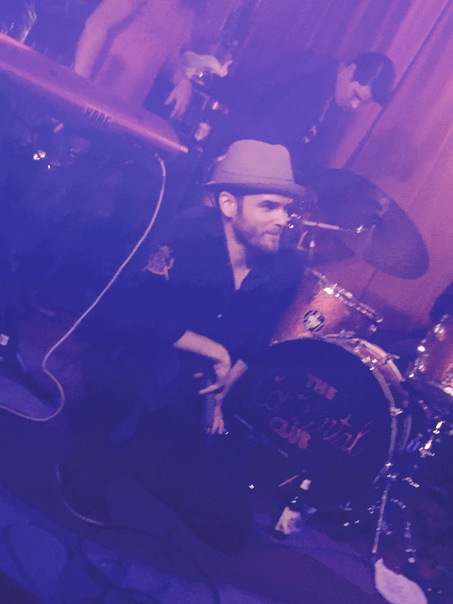 peoples at the party and the singer singing song with drums and kitar