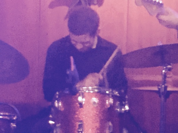Percussionist uses his drum-set to jam with the rest of his bands while preforming an amazing solo.