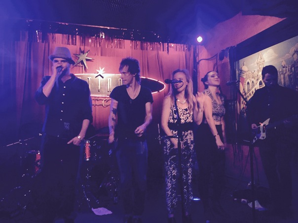 The man in the fedora hat performs a song with the help of the rest of the band.