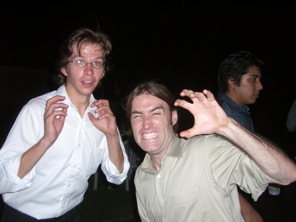 Early 90's frat boys cheesily posing and pretending to growl, or candid caught mid-Thriller dance.