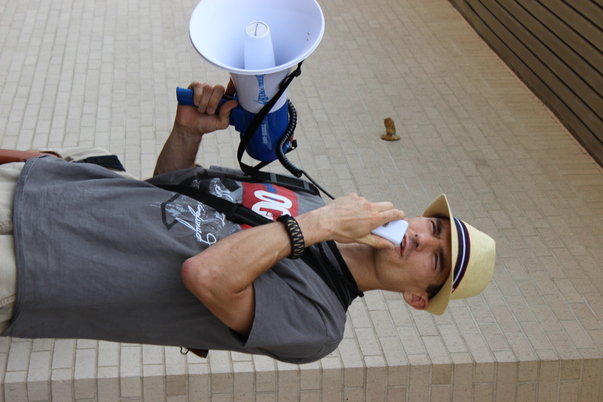 The self-important dick barked orders over a megaphone to a crowd who largely ignored him.