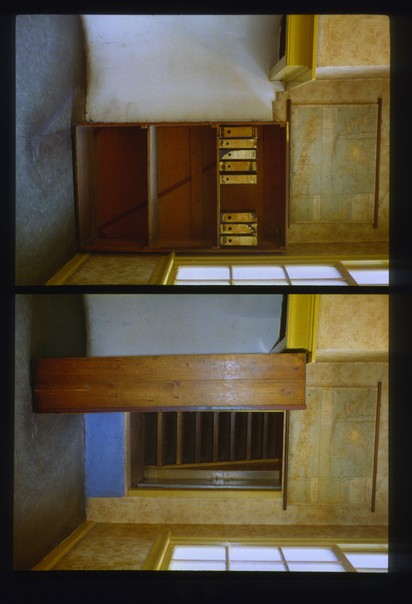 There is a bookshelf near the window. Some files are arranged on the first rack of the shelf. |