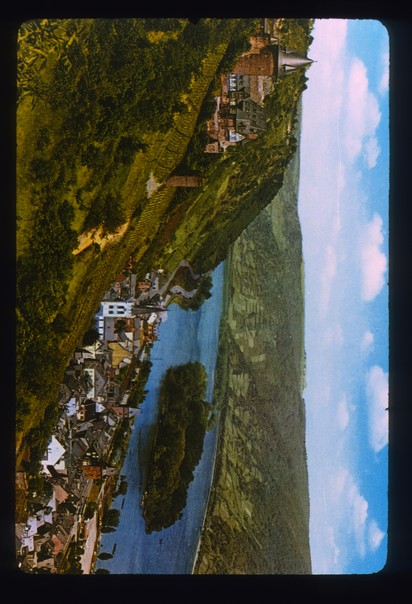 very nice location may be some island and there is castle is there in a hill. |