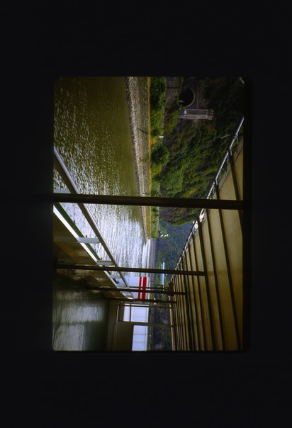 the sky s blue in color and the lake view is also seen and some staircase is also seen |