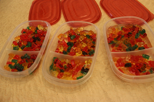 For my friend Claire's birthday, Adrienne and I made her 3 tubs of vodka-soaked Gummi Bears.