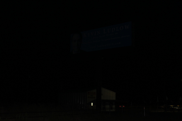 KEVIN LUDLOW'S SUPPORTING BANNER PLACED IN STREET, BUT PHOTO LOOKS LIKE DARK