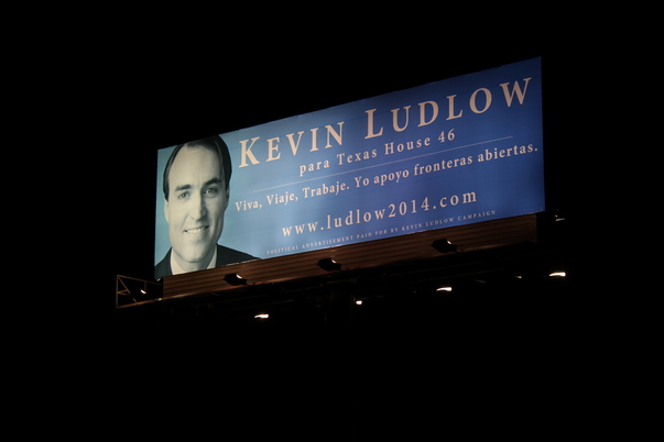 There is a billboard for Kevin Ludlow in Spanish with his picture.