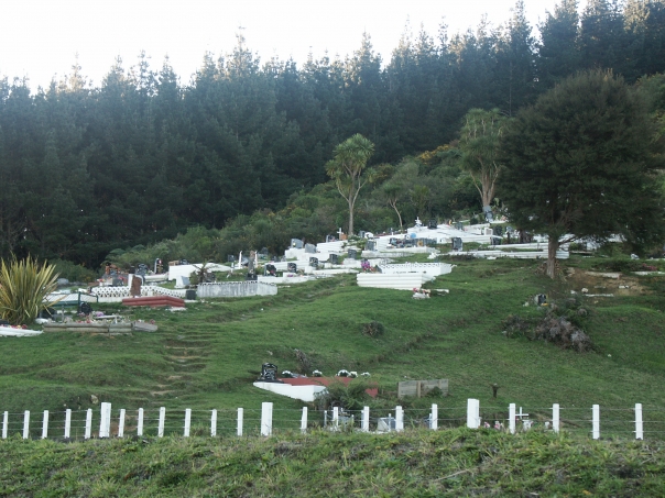 When we finally decided to leave Auckland in Campy, the first stop that we made happened to be at this Maori cemetery. We found it particularly interesting how the cemetery seemed quite different from one that we would be more accustomed to.