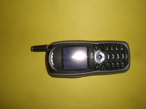 An early sprint cell phone of silver and black.