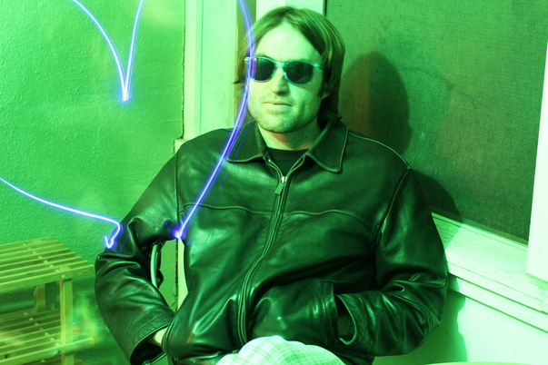 a man wearing a black leather jacket and sunglasses |