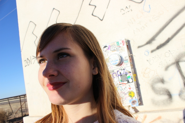 A gorgeous smile from a young lady with a backdrop of graffiti and artwork that contrasts the image. Shadowing and lightning provides an artistic profile picture.