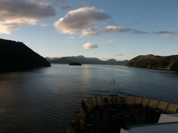 Cook Straight/Marlborough Sound-The ferry took us across the Cook Straight when we traveled from the North to the South island. The boat ride was very enjoyable, relaxing and provided us with a great opportunity to talk with some local kiwis. We were surprised that the ride wasn’t as rough as was we had heard but had fun swaying back and forth on the decks. The total trip time was about 3 hours but it all went by so fast. It was fun driving our camper van onto the lower deck of the boat where everyone parked their car in a compact yet organized manner. After the boat set sail, we were not able to return to our cars. To our surprise, the facilities were super nice with comfortable couches, a formal bar area, cafeteria, separate rooms with beds in them and free coffee and tea! The most magnificent part of the ride was the last 30 minutes. As we began to approach Marlborough Sound, the ferry slowed down as we made our way through the tall, rich green, soft looking mountains. They towered over us on every side and you could not see past them. The speed of the ferry is regulated so that the wake produced does not erode the mountainside. Unfortunately, the shores have all been washed up due to ferries going too fast or even too slow. This shows how close to the mountains you are as you drive through them. It is a breathtaking site and has been one of my favorite activities of this trip.