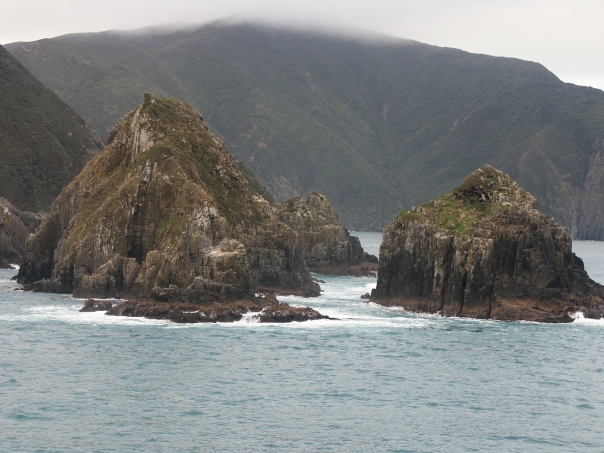 Cook Straight/Marlborough Sound-The ferry took us across the Cook Straight when we traveled from the North to the South island. The boat ride was very enjoyable, relaxing and provided us with a great opportunity to talk with some local kiwis. We were surprised that the ride wasn’t as rough as was we had heard but had fun swaying back and forth on the decks. The total trip time was about 3 hours but it all went by so fast. It was fun driving our camper van onto the lower deck of the boat where everyone parked their car in a compact yet organized manner. After the boat set sail, we were not able to return to our cars. To our surprise, the facilities were super nice with comfortable couches, a formal bar area, cafeteria, separate rooms with beds in them and free coffee and tea! The most magnificent part of the ride was the last 30 minutes. As we began to approach Marlborough Sound, the ferry slowed down as we made our way through the tall, rich green, soft looking mountains. They towered over us on every side and you could not see past them. The speed of the ferry is regulated so that the wake produced does not erode the mountainside. Unfortunately, the shores have all been washed up due to ferries going too fast or even too slow. This shows how close to the mountains you are as you drive through them. It is a breathtaking site and has been one of my favorite activities of this trip.