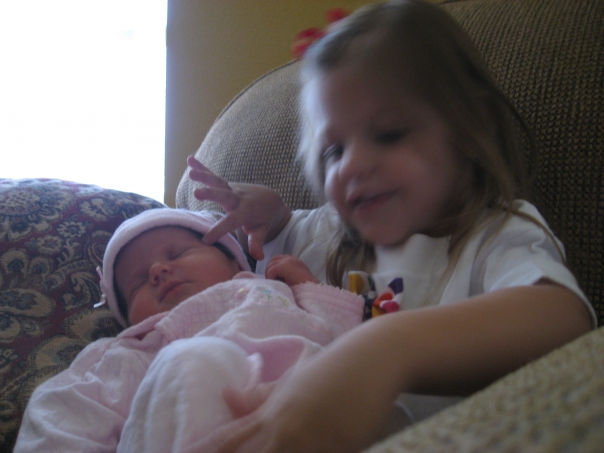 This is the first time that Tracy and I had gotten the opportunity to actually see and hold her sister's new baby, Lucy. Even I was graciously given the opportunity to hold her. She looked identical to what her sister looked like as an infant.