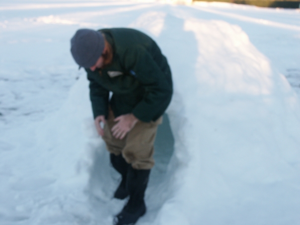 This man is looking for something in the snow