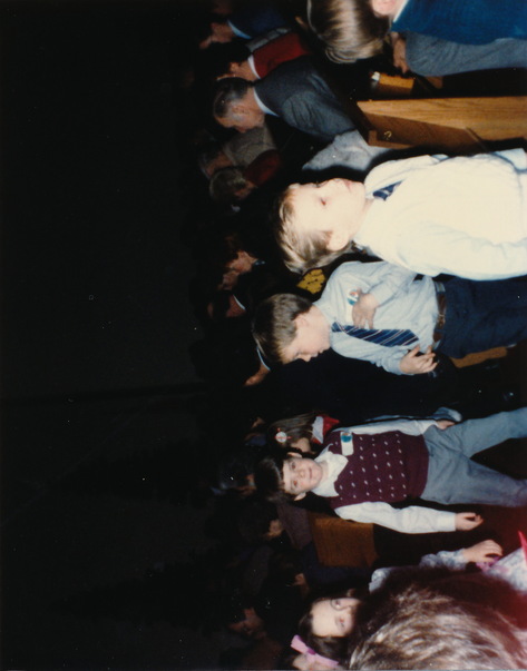 There is a picture of a large amount of kids and adults gathered for a social gathering. |