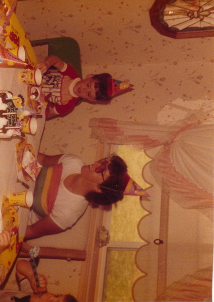 An vintage photo showing mother and her children celebrating a Birthday. |