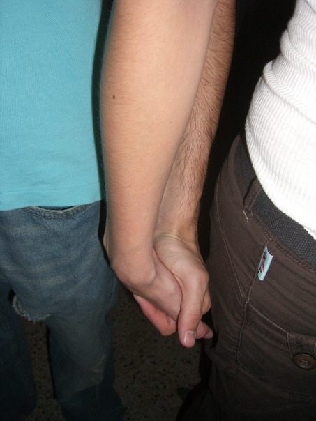 Two arms one is hairy the not holding hands back view of the bodys
