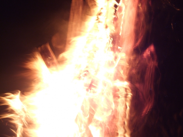 This looks like an exploding fire or bomb of some sort in the middle of the night.