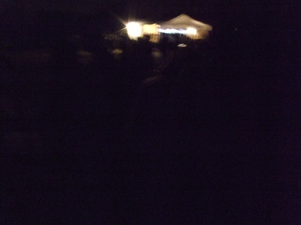 A tent is glowing with lights is projected from the dark