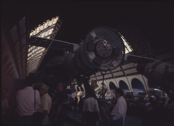people viewing a space orbiter in dim picture